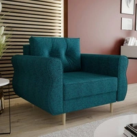 Křeslo Wilkins modré elegantní křeslo do obývacího pokoje s prostorným a měkkým sedákem dřevěné nohy dodávají optickou lehkost