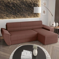 Rohová pohovka s funkcí spaní Fogu II Indická růžová pravostranná stylová rohová pohovka s pohodlnými područkami a kontejnerem na lůžkoviny