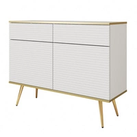 Luxusní zásuvková komoda 107 cm bílá stylová komoda s drážkovanými čely s korpusem zakončeným zlatým lemováním zlaté kovové nohy