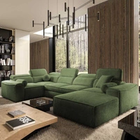 Rohová sedací souprava s funkcí spaní Tesalia III Lux zelená levá pohodlná rohová sedací souprava s výsuvnou podnožkou a posuvnou funkcí opěradla