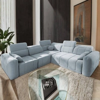 Rohová pohovka s funkcí spaní Cetara III modrá levá ergonomická rohová pohovka s posuvným opěradlem a nastavitelnými opěrkami hlavy