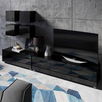Nábytková sestava Psaru černá / černý lesk Moderní designová nástěnná skříňka do obývacího pokoje nebo obývacího pokoje s vysoce lesklými čely