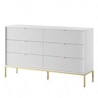 Komoda Lovro 154 cm zásuvková bílá moderní design potěší milovníky výrazných interiérů rýhovaná čela zlaté doplňky