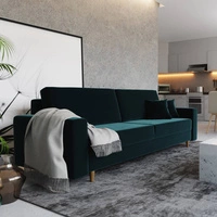 Pohovka Kelly s funkcí spaní zelená stylová pohovka do obývacího pokoje s jednoduchým designem nastavitelné opěrky hlavy velurová tkanina