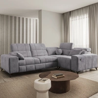Rohová sedací souprava s funkcí spaní Kelly IV grafitová levá opletená pohodlná rohová sedací souprava nastavitelné opěrky hlavy boční čalounění s lištami