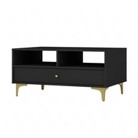 Konferenční stolek Kioto I černý grafit se zásuvkou elegantní design zesílená kovová podnož ve zlaté barvě subtilní rukojeť
