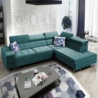 Námořnická pravá rohová pohovka Hampton VII s funkcí spaní ze sametové látky s hladkým povrchem