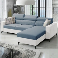 Rohová sedací souprava s funkcí spaní Savona modrá / bílá pravá elegantní rohová sedací souprava s nastavitelnými opěrkami hlavy dekorativní prošívání