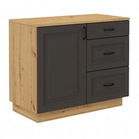 Styl 100 cm komoda dub artisan / šedý grafit užitková a funkční komoda stylové frézované čela kovové úchyty