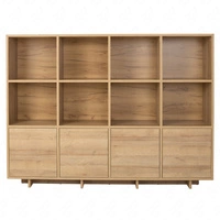 Knihovna Wald 80 cm béžová / béžová rybí kost Skandinávský design stabilní knihovna na vysokých nohách s dvířky do obývacího pokoje vkusný vzor rybí kost