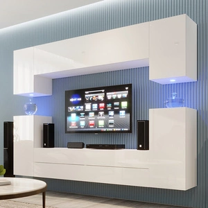 Dion bílá / bílý lesk univerzální a stylová nástěnná skříňka do obývacího pokoje systém push to open pro dveře a zásuvky