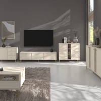 Nábytková sestava do obývacího pokoje Kioto II béžová stylový design elegantní nábytek podepřený kovovými zlatými nohami decentní úchyty