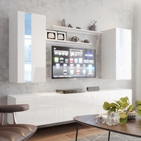 Paleo bílá / bílý lesk Minimalistický design nástěnné skříňky do obývacího pokoje nebo zasedací místnosti Systém push to open