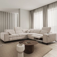 Rohová sedačka s funkcí spaní Cetara III krémová levá ergonomická rohová sedačka s posuvným opěradlem a nastavitelnými opěrkami hlavy