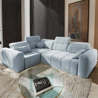 Rohová sedací souprava s funkcí spaní Castel II Lux modrá levá pohodlná rohová sedací souprava do obývacího pokoje s pohodlným výsuvným podnožníkem
