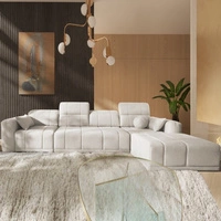 Rohová sedací souprava s funkcí spaní Cetara krémová pravá strana stylový design pohodlné posuvné opěrky zad nastavitelné opěrky hlavy