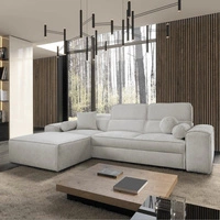Rohová sedací souprava s funkcí spaní Tesalia VIII béžová levá pohodlná rohová sedací souprava do obývacího pokoje s inovativní funkcí posuvného opěradla