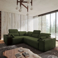 Rohová sedačka s funkcí spaní Tesalia II zelená levá pohodlná rohová sedačka do obývacího pokoje s posuvným opěradlem nádoba na lůžkoviny