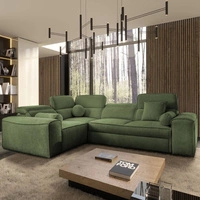 Rohová sedací souprava s funkcí spaní Tesalia III Lux zelená levá pohodlná rohová sedací souprava s výsuvnou podnožkou a posuvnou funkcí opěradla