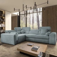 Rohová sedací souprava s funkcí spaní Viano III Lux šedomodrá pravá moderní rohová sedací souprava s výsuvnou podnožkou kontejner na ložní prádlo