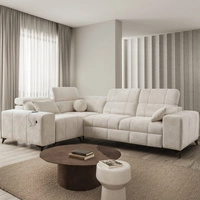 Rohová pohovka s funkcí spaní Cantare VIII béžová levá strana vkusná rohová sedací souprava s polohovatelnými opěrkami hlavy nádoby na lůžkoviny