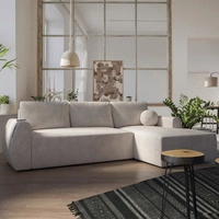 Rohová sedací souprava s funkcí spaní Buffalo VII béžová levá strana stylová rohová sedací souprava s kontejnery na lůžkoviny velurová tkanina