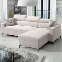 Rohová sedací souprava s funkcí spaní Rovigo krémová levá elegantní rohová sedací souprava ve skandinávském tvaru velký kontejner na lůžkoviny
