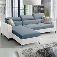 Rohová sedací souprava s funkcí spaní Savona modrá / bílá levá elegantní rohová sedací souprava s nastavitelnými opěrkami hlavy dekorativní prošívání