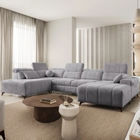 Kelly Sleek IX šedá levá rohová pohovka s funkcí spaní elegantní rohová pohovka s pohodlnými područkami a nastavitelnými opěrkami hlavy