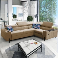 Rohová sedací souprava s funkcí spaní Tesalia XII béžová levá moderní design pohodlný posuvný opěrák zásuvka v boku nábytku