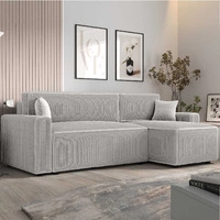 Rohová sedací souprava s funkcí spaní Belvi III šedá pravá pohodlná a elegantní rohová sedací souprava do obývacího pokoje s praktickým úložným prostorem na boku