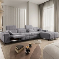 Rohová sedací souprava s funkcí spaní Penejos XII světle šedá pravá stylová rohová sedací souprava s kontejnery na lůžkoviny pohodlné nastavitelné opěrky hlavy
