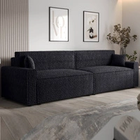 Rozkládací pohovka Brandon XL Bis černá moderní designová tkanina s výrazným smyčkovým povrchem nádoby na lůžkoviny