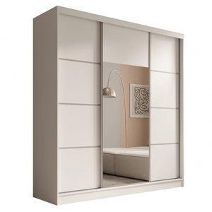 Posuvná šatní skříň Beta 200 cm bílá s vertikálním zrcadlem Prostorná šatní skříň je ideální pro místnosti jakékoli velikosti