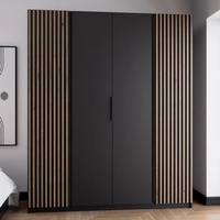 Šatní skříň Kastano XI 200 cm černá moderní designové dveře šatní skříně zdobené dubovými lamelami evokujícími stylové hrany úchytek