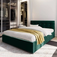 Čalouněná postel Mona 140x200 lahvově zelená s kontejnerem v moderním skandinávském stylu s prošívaným podhlavníkem s krystaly