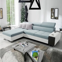 Rohová rozkládací pohovka Dafni arktická modrá / bílá levá pletená pohodlí a funkčnost při každodenním odpočinku