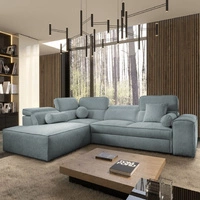 Rohová sedací souprava s funkcí spaní Viano VII šedomodrá levá Módní a stylová rohová sedací souprava s nastavitelnými opěrkami hlavy Dekorativní polštáře