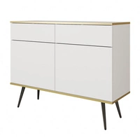 Komoda se zásuvkami Luxury 107 cm bílá moderní design obývacího pokoje korpus komody doplněný zlatým lemováním černé kovové nohy