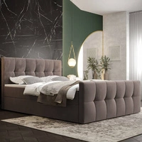 Světle hnědá kontinentální postel Manhattan 160x200 v moderním skandinávském stylu s čalouněným čelem a nohama