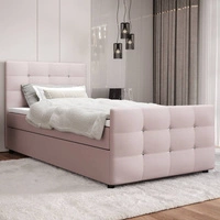 Kontinentální postel Fresno 90x200 pudrově růžová v moderním skandinávském stylu s čalouněným čelem postele s úložným boxem