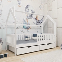 Dřevěná postel Timon 80x170 cm bílá moderní design dětský domeček postel z masivního borovicového dřeva prostorné zásuvky