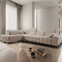 Rohová pohovka s funkcí spaní Penejos XI béžová levá pohodlná rohová pohovka s nastavitelnými opěrkami hlavy a dvěma přihrádkami na lůžkoviny