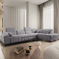 Rohová pohovka s funkcí spaní Penejos XI šedá levá pohodlná rohová pohovka s nastavitelnými opěrkami hlavy a dvěma přihrádkami na lůžkoviny