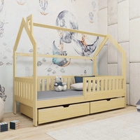 Dřevěná postel Timon 80x180 cm borovice moderní design dětský domeček postel z masivního borovicového dřeva prostorné zásuvky