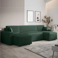 Rohová sedací souprava s funkcí spaní Brandon U Bis zelená nádoba na lůžkoviny trojrozměrná látka s výraznými pruhy měkké područky