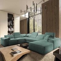 Rohová sedací souprava s funkcí spaní Fogu U II modrá pohodlná rohová sedací souprava s pohodlnými područkami zajímavý design kontejner na lůžkoviny