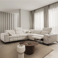 Rohová sedací souprava s funkcí spaní Tesalia V modrá levá komfortní rohová sedací souprava se zásuvkou a funkcí posuvného opěradla