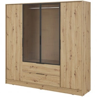Šatní skříň Corse 206 cm dub artisan moderní designová šatní skříň se skleněnými předěly ideální do ložnic šatní skříň s tyčí na zavěšení oděvů