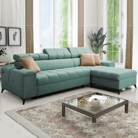 Rohová pohovka s funkcí spaní Tesalia III modrá levá pohodlná rohová pohovka s posuvným opěradlem dvě nádoby na lůžkoviny